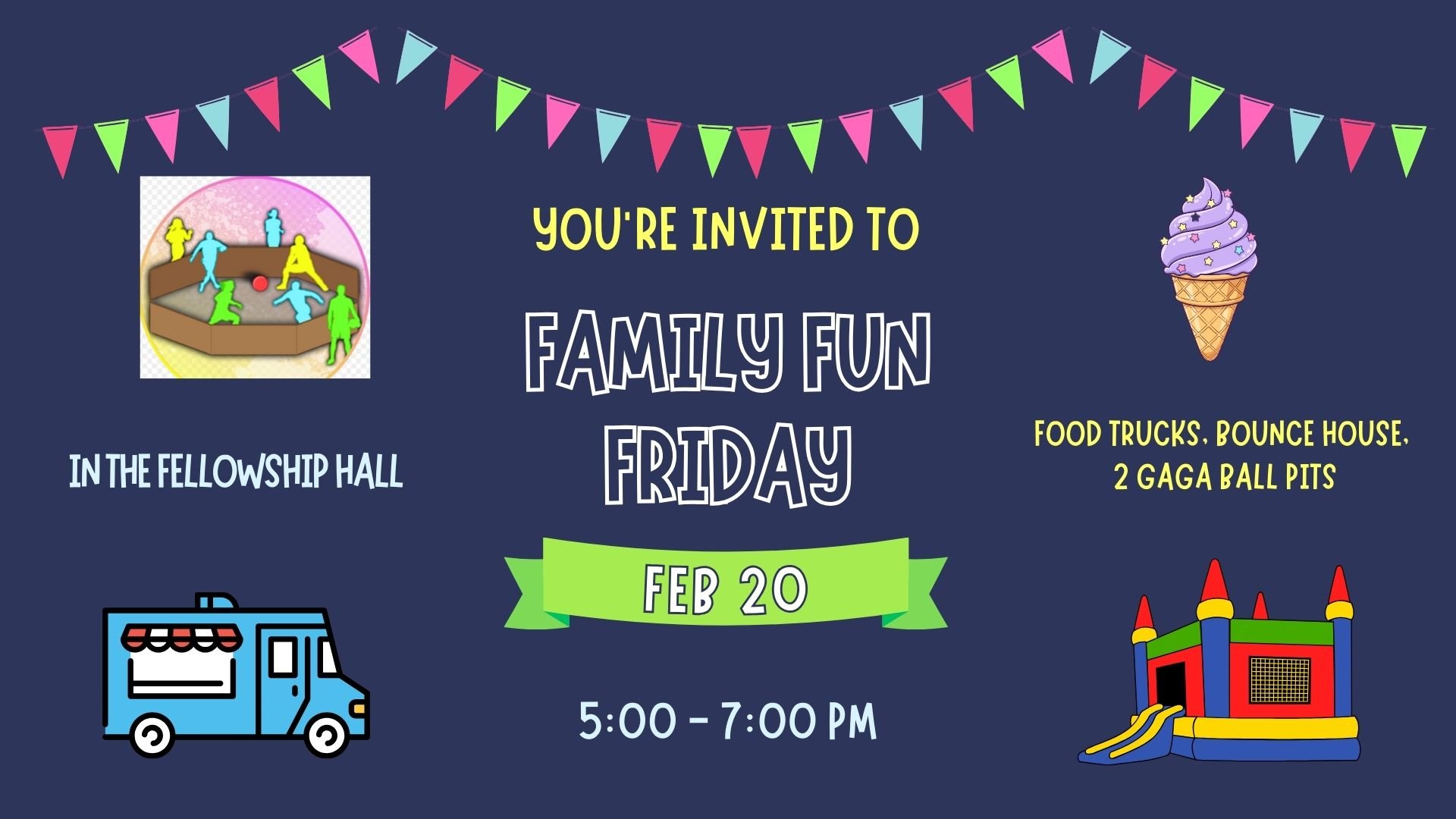 You’re invited to join us on Friday, February 20th from 5:00 - 7:00 p.m. for Family Fun Friday.